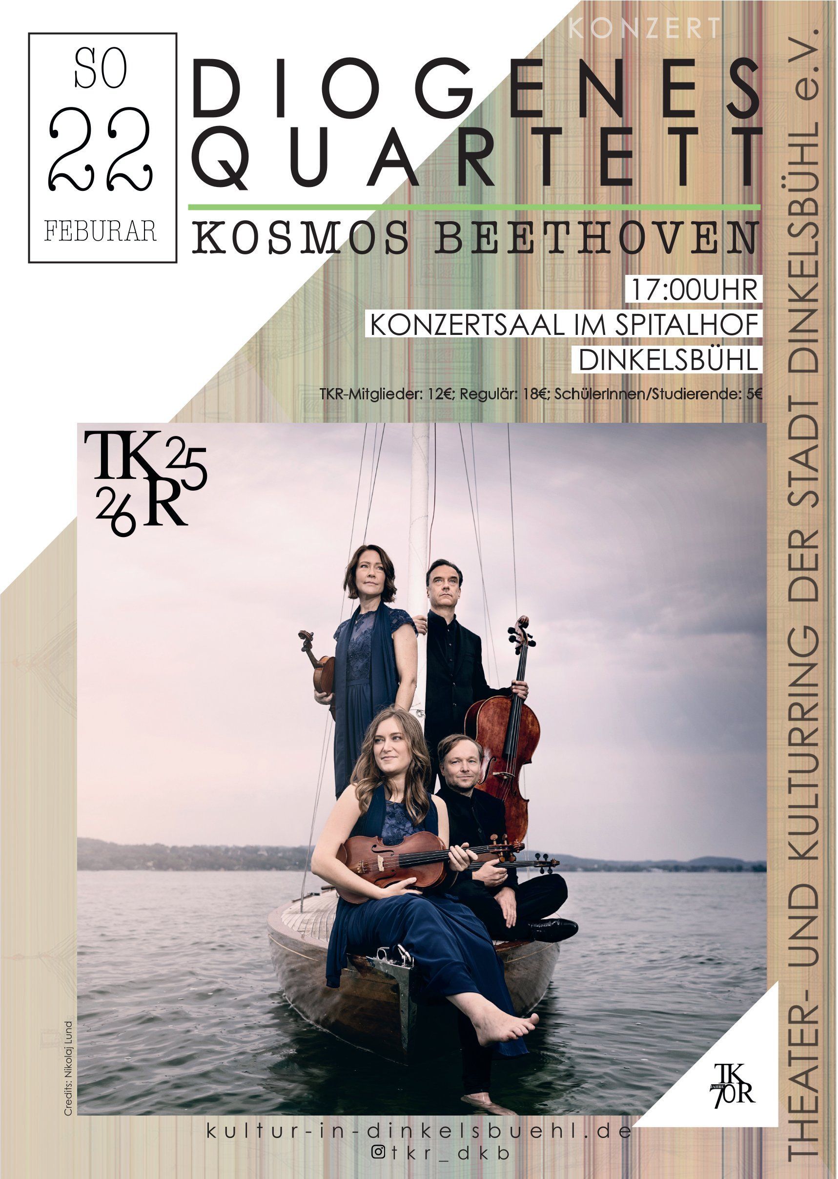 Zu einem Konzerthighlight mit dem herausragenden „Diogenes Quartett“ lädt der Theater- und Kulturring der Stadt Dinkelsbühl e. V. am Sonntag, 22.02.2026 um 17 Uhr in den Konzertsaal im Spitalhof ein: unter dem Titel „Kosmos Beethoven“ gibt das Ensemble, das zu den angesehensten deutschen Streichquartetten unserer Zeit gehört, einen Einblick in Ludwig van Beethovens Schaffenskraft.